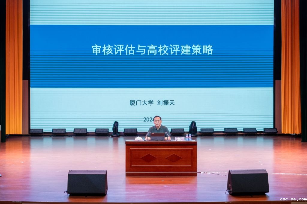 会上,厦门大学教育研究院党委书记、博士生导师刘振天教授以《把握审核评估精髓 促学校高质量发展》为题作专题辅导。刘教授结合多年参加教育部教育教学评估的经验和自身工作实践,从评估的意义及发展历程、审核评估对象和功能定位、审核评估指标体系核心要义及考察重点等方面进行详细、深入地阐释。报告内容丰富、思想深刻、深入浅出,涵盖宏观政策解读和具体实践路径的微观辅导,为我校全面落实立德树人根本任务,准确把握审核评估工作重点,吃透审核评估指标内涵,做好自评自建工作指明了方向。