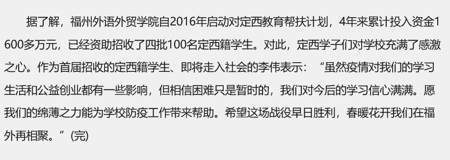 新浪网报道:甘肃定西学子千里寄“包裹”助福州母校“战疫”