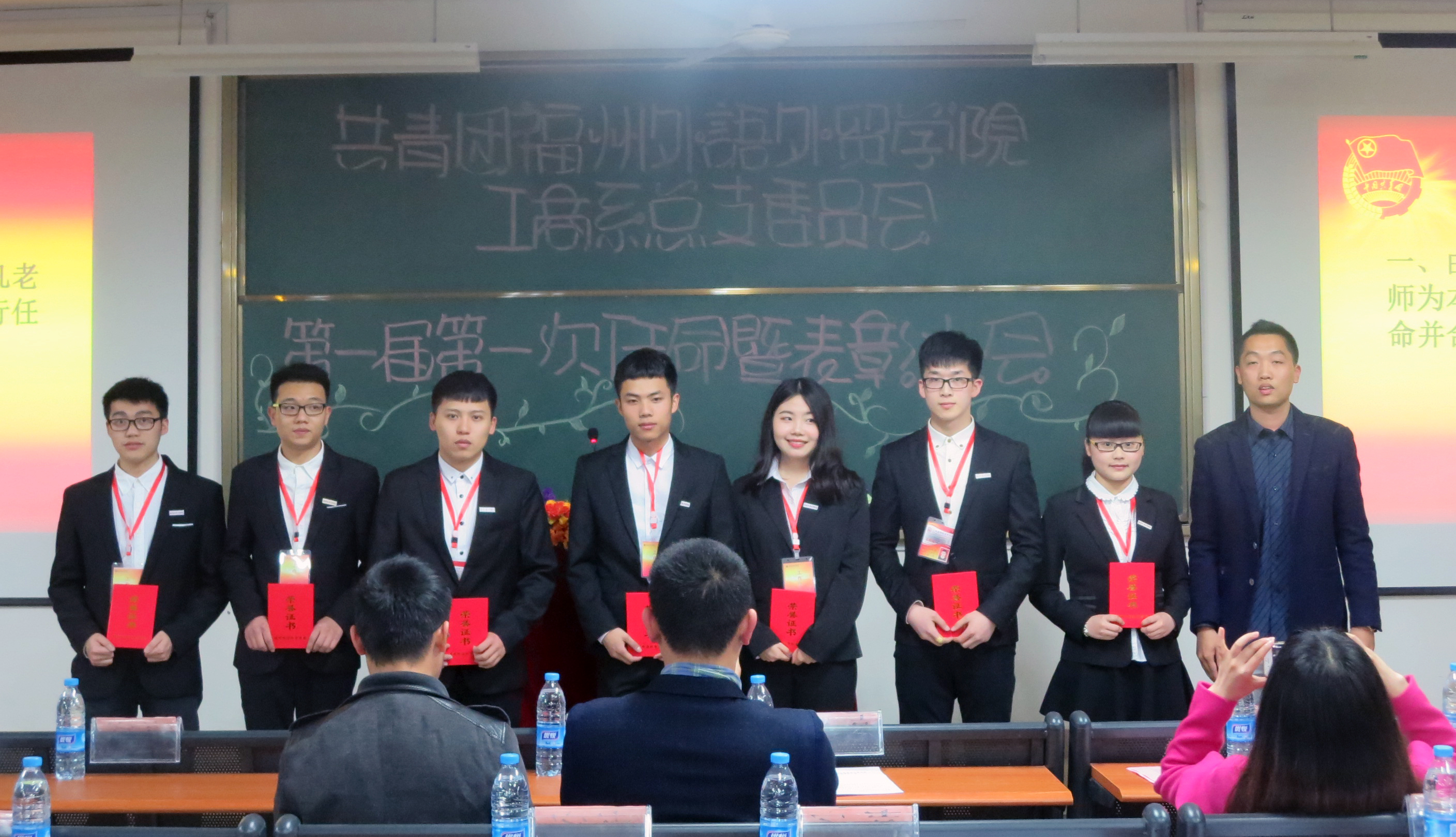 322日,工商系团总支学生会在北区实验楼3302举行第一届第一次团学干部任命暨表彰大会。工商系工作室主任、学生党支部书记陈曦,团总支书记陈凡,学生会秘书长欧菁,工商系思政素质教师陈增文及280名工商系团学干部参加了本次大会。