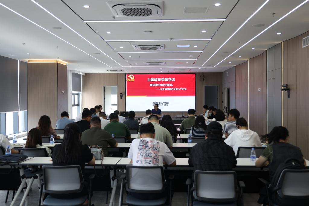 5月25日,我校开展学习贯彻习近平新时代中国特色社会主义思想主题教育读书班专题活动。外国语学院分党委书记、分管学生工作副院长杨惠容以《廉洁奉公树立新风——持之以恒推进全面从严治党》为题,为党员干部讲授主题教育专题党课。