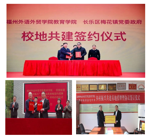 发挥党建引领,积极开展校地共建,支部先后与长乐区营前街道、吴航街道、航城街道、梅花镇、古槐镇,柘荣县宅中乡等建立服务基地,并与长乐区乡村振兴办、长乐区文明办和新时代文明实践中心建立服务对接单位。同时,积极与周边小学、幼儿园、特殊教育机构达成合作共识,积极构建以学生为主体、社会力量为支撑的志愿服务多元的实践育人平台,为支部开展“服务+”实践育人提供基地保障。