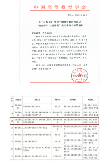 支部与共建单位联合申报《基于乡村振兴“新农人”视角的创新人才协同培养实践基地建设》案例入选中国高等教育博览会(2021-2022年)“校企合作 双百计划”典型案例。