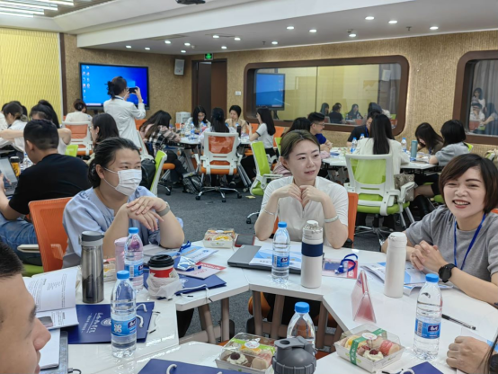 参训学员积极踊跃地与培训师进行针对性的交流和讨论,各小组一起分享学习所得,相互交流、学习、思想碰撞,激发对学生认知过程、学习行为的探究兴趣。学员们均表示本次工作坊的培训活动形式轻松自由,理论学习与实操演练相结合、团队辅导与个人演练相结合,内容丰富,干货满满,学到了真技能、真本事。