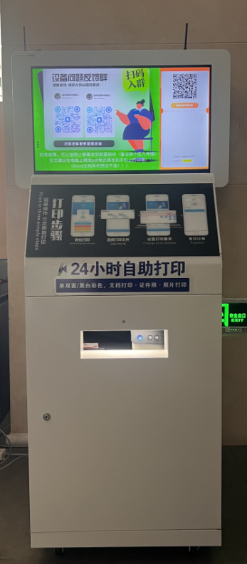为了给读者提供便捷、高效的服务,图书馆为读者提供自助文印服务。读者根据设备指引进行自助打印操作。