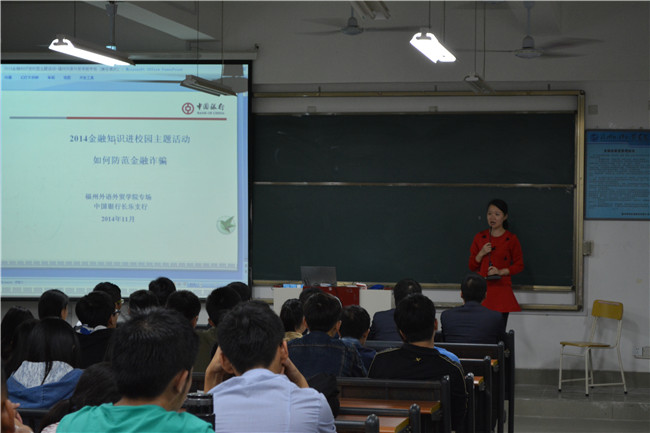 经济学院团委与中国银行长乐支行 共同举办“宣传金融知识,防范金融诈骗”讲座 11月24日,经济学院团委与中国银行长乐支行共同举办了一场题为“宣传金融知识,防范金融诈骗”的讲座。....