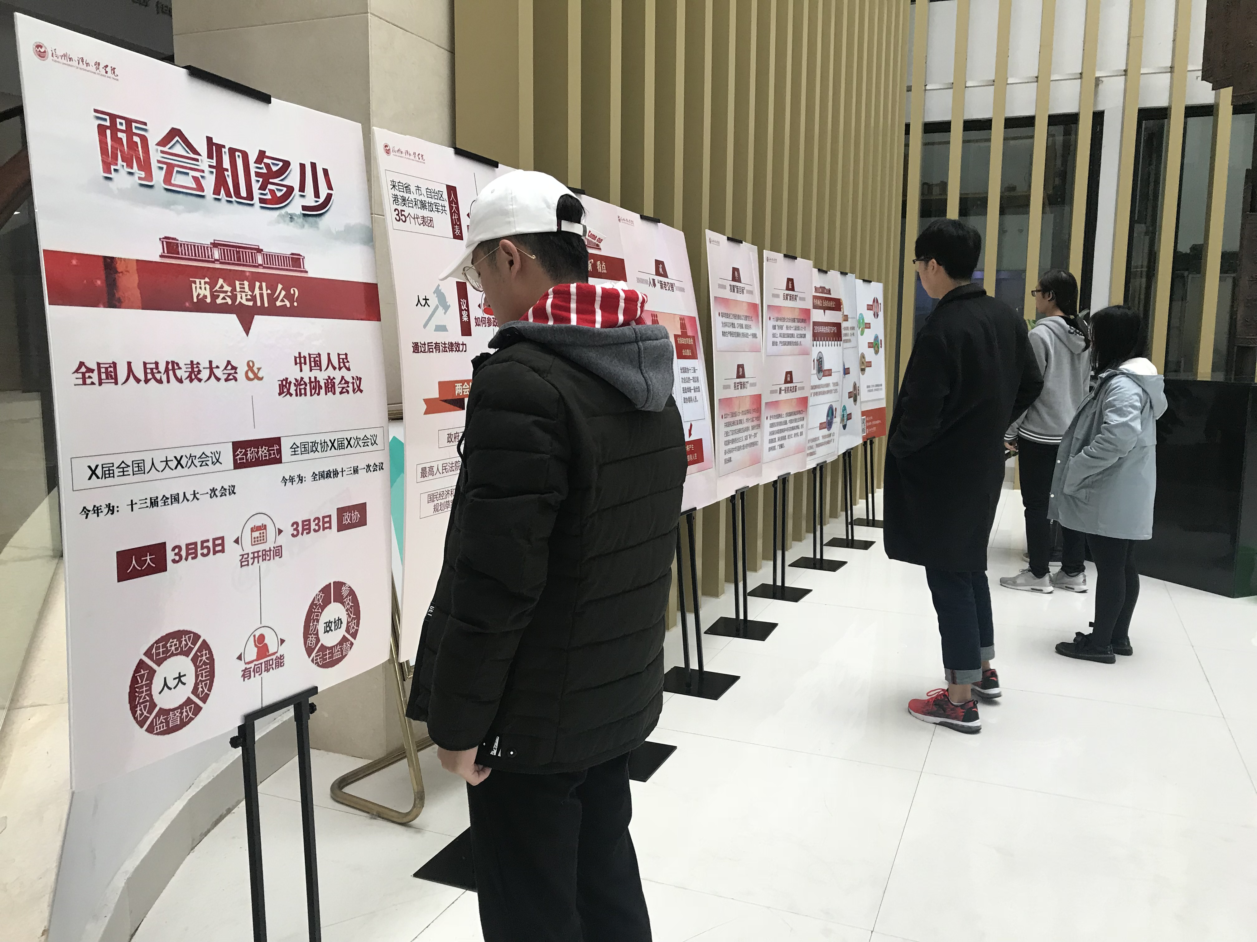 3月5日至20日,我校在图书馆一层大厅举办“聚焦两会”宣传活动。