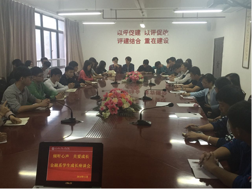 11月1日,金融系工作室在B606会议室召开“倾听心声,关爱成长”主题学生座谈会。金融系系主任陈钦副教授、任课教师、金融系素质教师与来自该系的27个班级的学生代表展开现场交流,座谈会由该系工作室负责人林顺义...