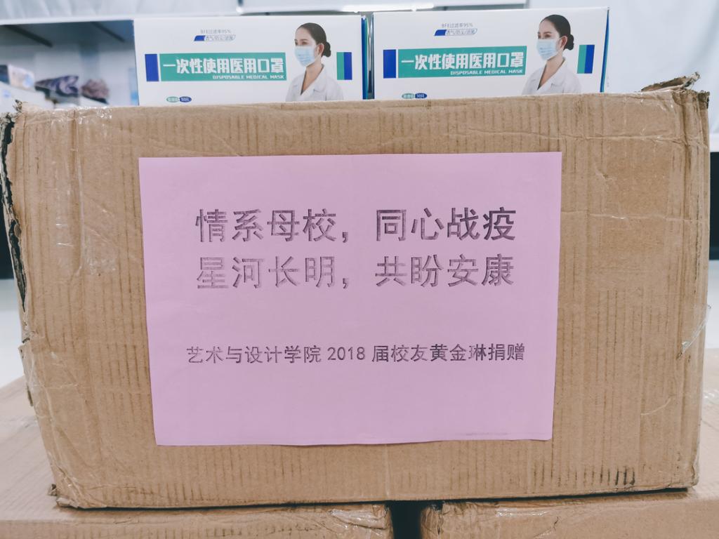 “情系母校,同心战疫,星河长明,共盼安康。”这是口罩上贴着的暖心标语,也是黄金琳对母校的真情流露。提到捐赠初衷,黄金琳表示,大学时代,艺术与设计学院对自己有着非常积极的影响和意义,怀揣对母校的感恩,尽一份绵薄之力。